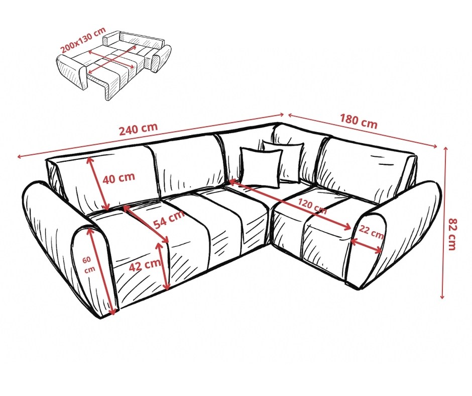 Model Lusso posiada wygodną funkcję spania z automatem DL, dzięki której rozłożysz go lekko i bez wysiłku. Mechanizm DL sprawia, że narożnik rozkłada się płynnie, tworząc równą i komfortową powierzchnię do spania o wymiarach 200 × 130 cm. To świetne rozwiązanie, jeśli potrzebujesz narożnika do spania codziennego lub okazjonalnego.