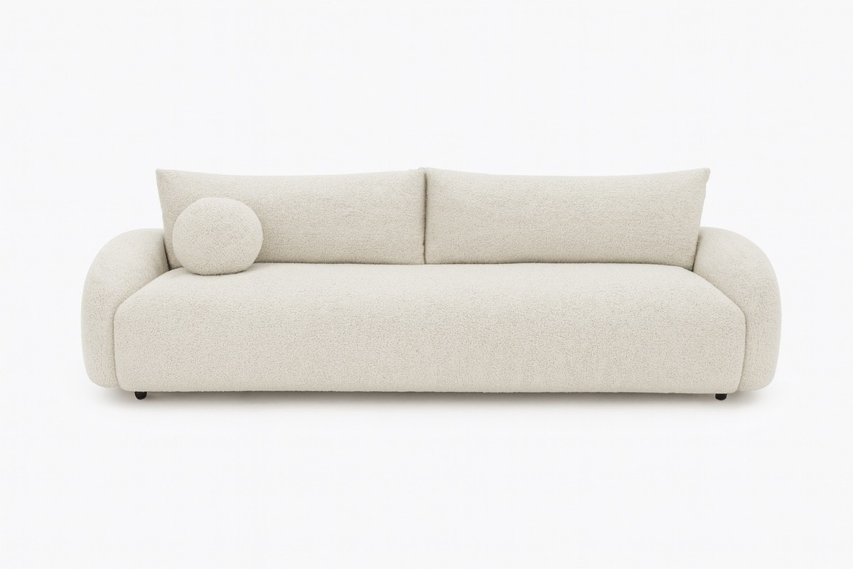 Minimalizm, komfort i modny design w jednym. Sofa NUBE to wyjątkowy mebel inspirowany współczesnymi trendami wnętrzarskimi. Jej miękkie, obłe kształty nadają wnętrzu przytulności, a modna tkanina bouclé wprowadza elegancję i strukturę, która pięknie prezentuje się zarówno w salonach nowoczesnych, japandi, jak i soft loft.